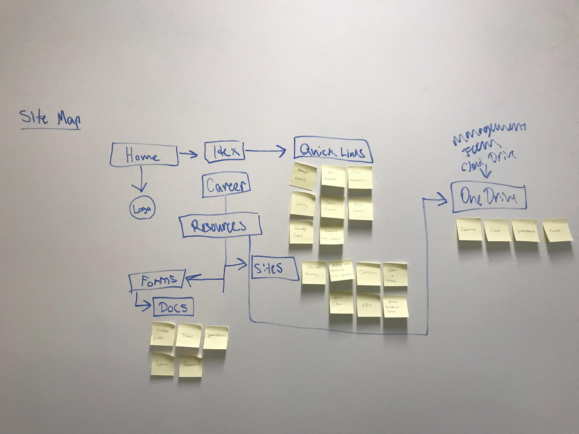 SitemapThe site map enabled me to organize holistically the pages of the website. I also worked with some colleagues to determine where pages would be located on our home menu. Pages were organized by importance and priority to each of the team's needs.
